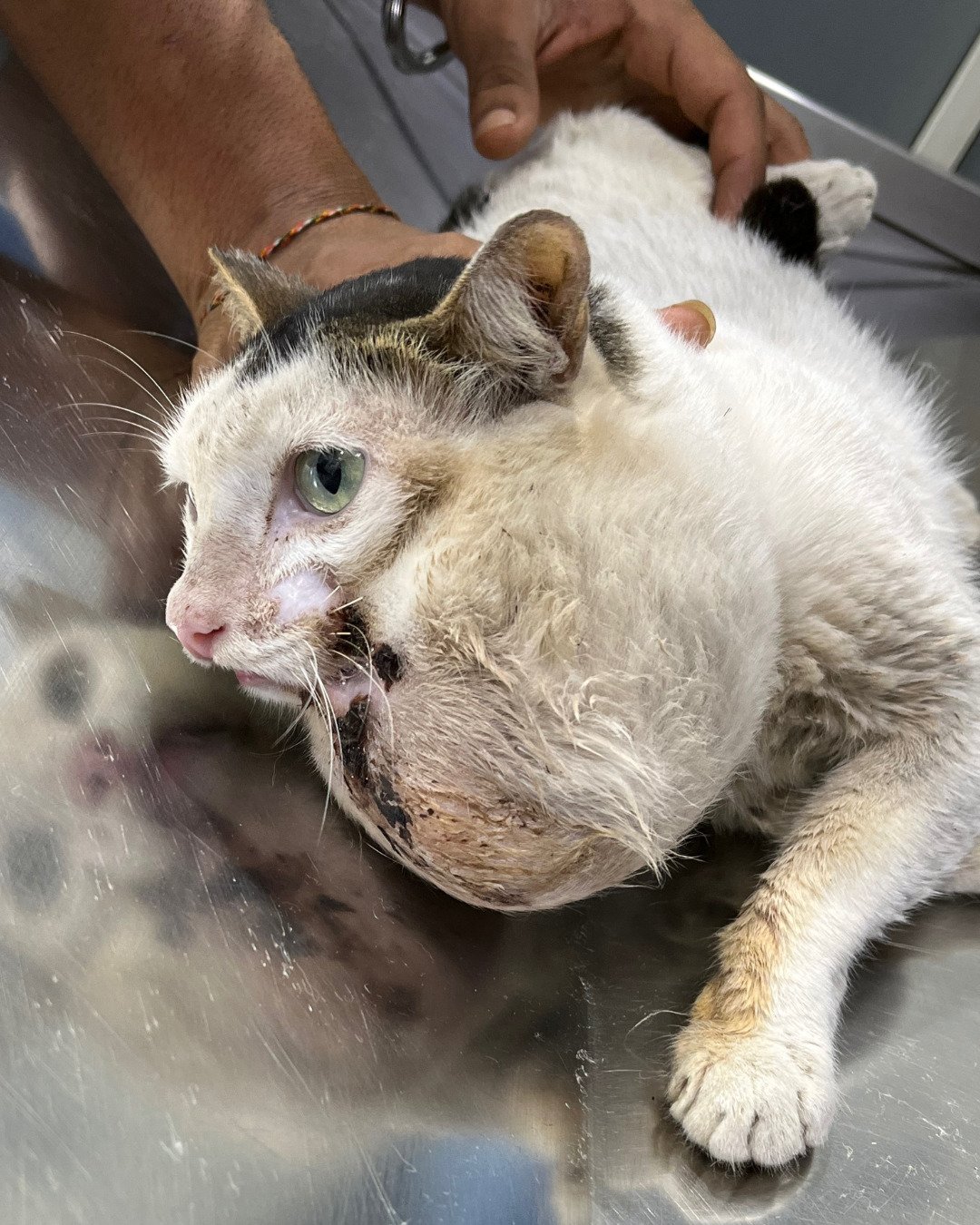Treated for large abscess on neck, now up for adoption at our sister organisation Cat Café Studio